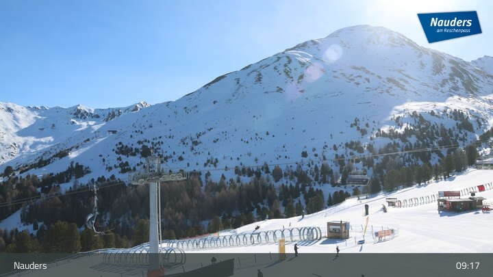 Archived webcam image showing Nauders Reschenpass upper station on 7 Apr 2026 at 09:08 08:00