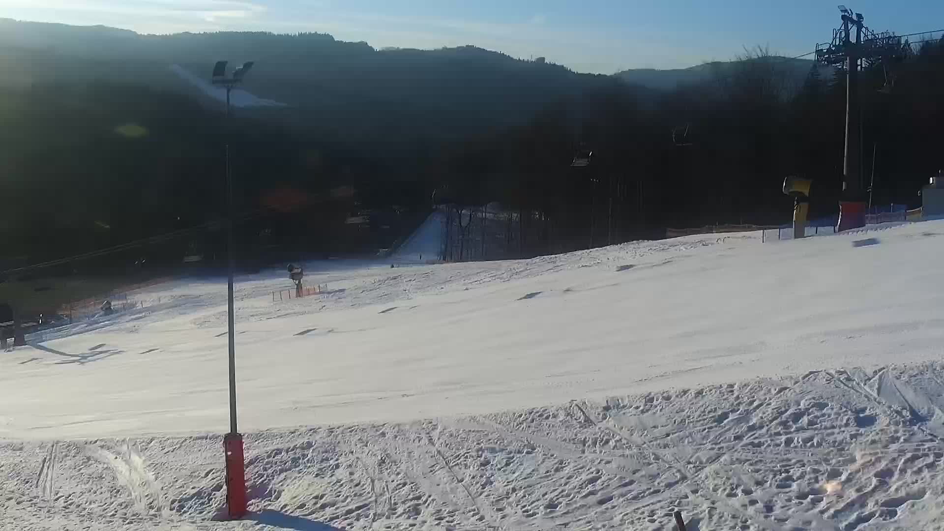 The webcam shows the red slope No. 1 at the 4-seater chairlift of the Nowa Osada ski resort in Wisla.