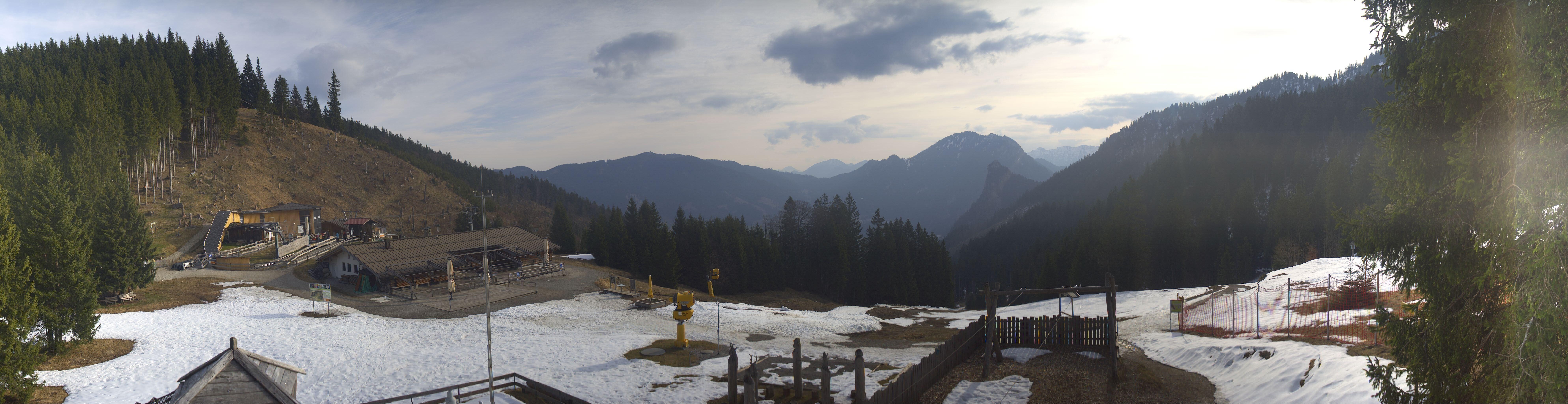 Have a look at the top station of the Kolben chair lift in Oberammergau. The webcam is located at the Kolbensattel mountain hut.