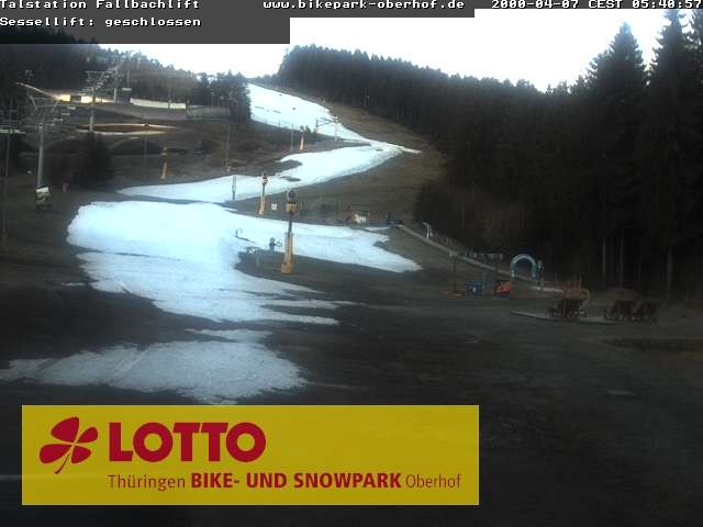 Archived webcam image showing Oberhof: Base station Fallbachhang on 8 Apr 2026 at 06:14 05:00