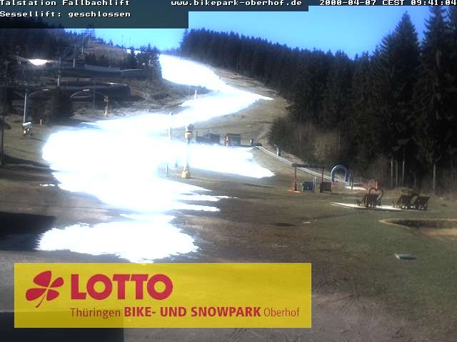 Archived webcam image showing Oberhof: Base station Fallbachhang on 8 Apr 2026 at 10:14 09:00