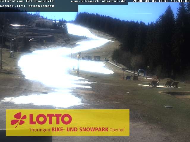 Archived webcam image showing Oberhof: Base station Fallbachhang on 8 Apr 2026 at 00:14 23:00