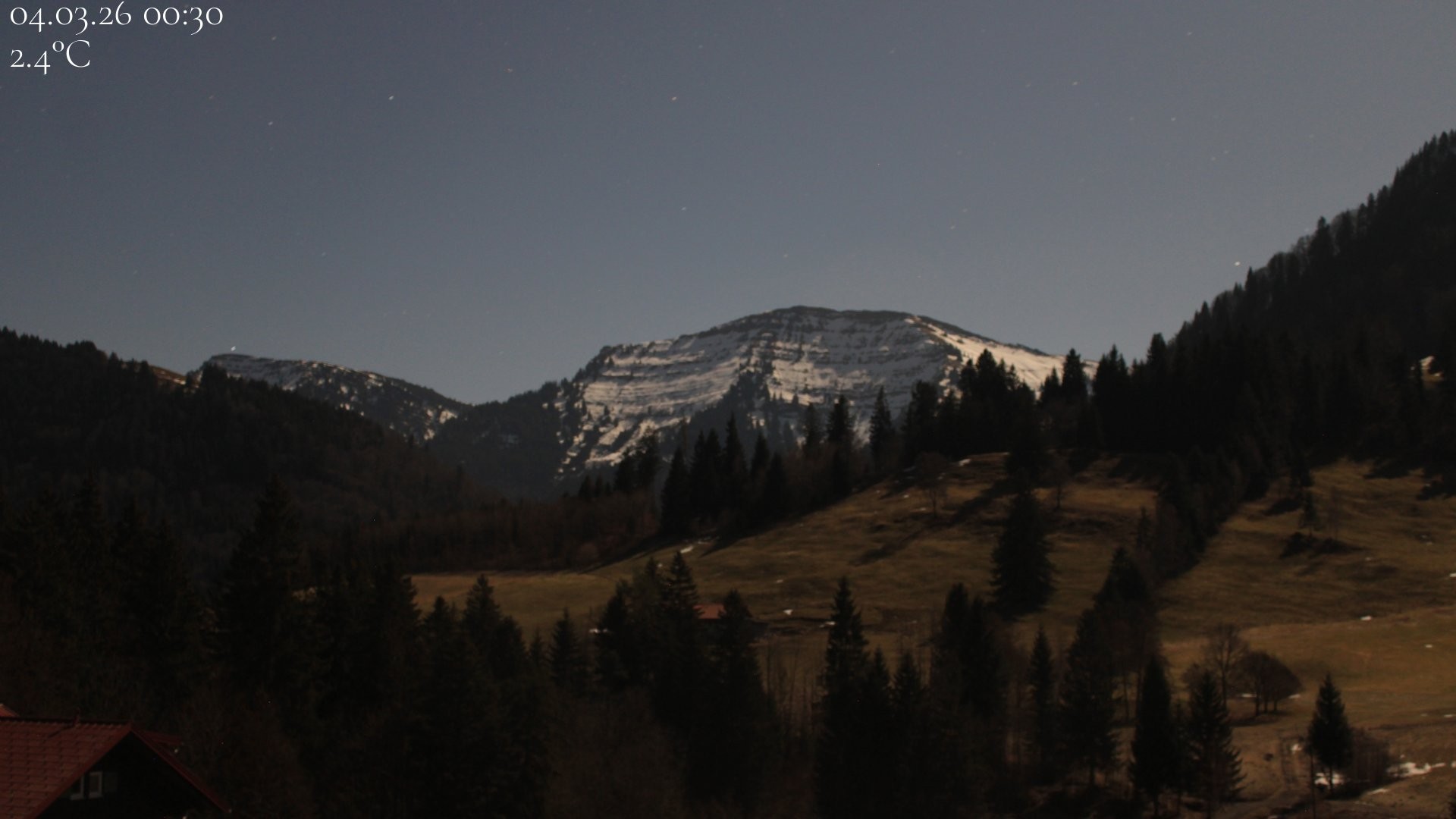 Archived webcam image showing Oberstaufen - Hotel Schratt view Hochgrat mountain on 4 Mar 2026 at 00:31 23:00