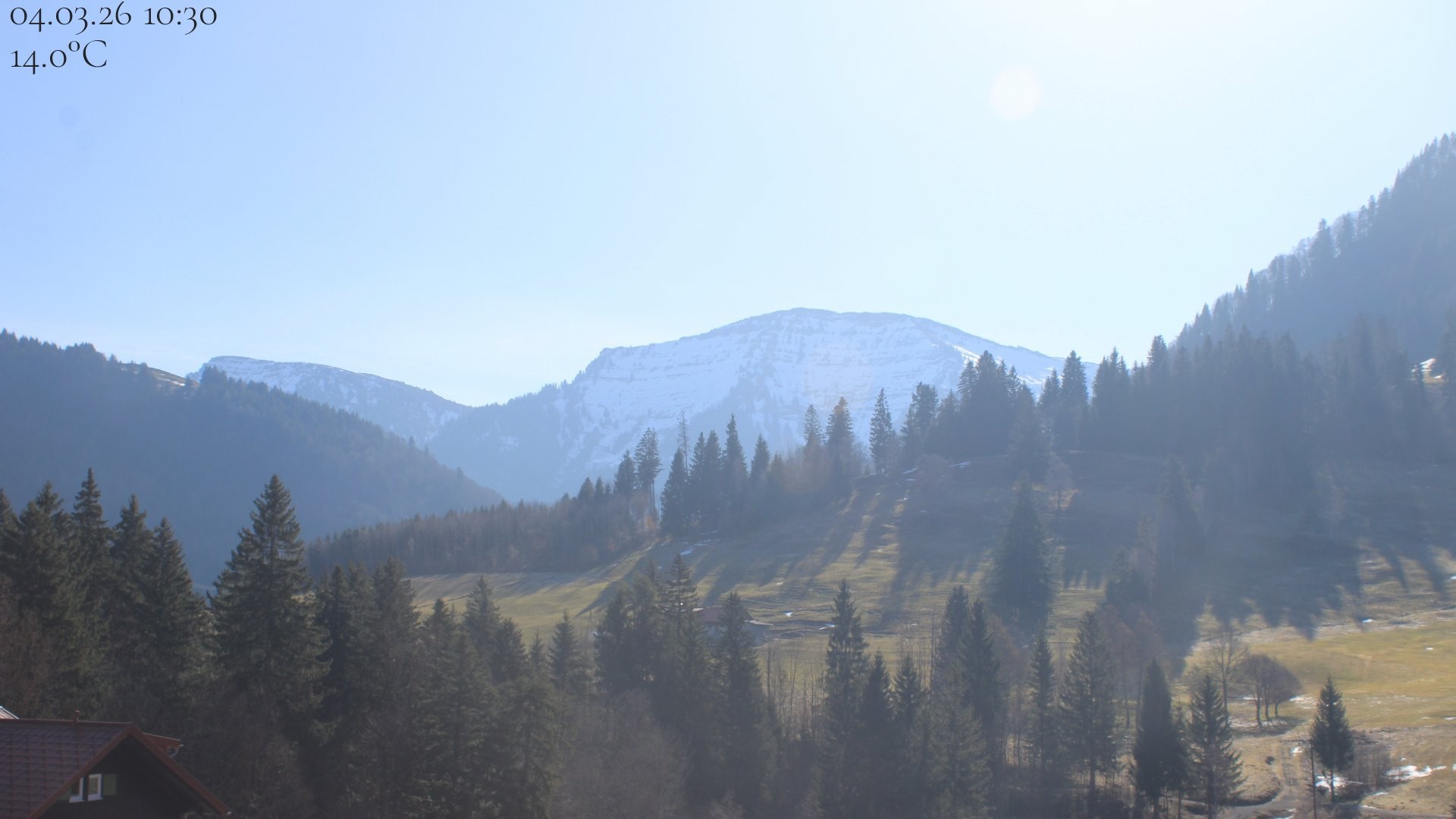 Archived webcam image showing Oberstaufen - Hotel Schratt view Hochgrat mountain on 4 Mar 2026 at 10:31 09:00