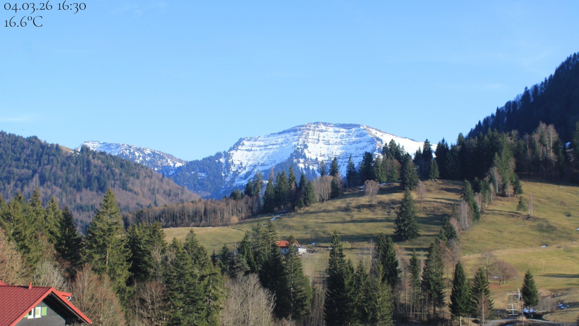 Archived webcam image showing Oberstaufen - Hotel Schratt view Hochgrat mountain on 4 Mar 2026 at 16:31 15:00
