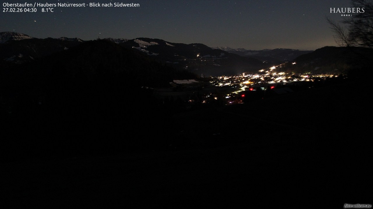 The webcam is located at a building of the Haubers Alpenresort and shows the view to the southwest to Oberstaufen.
