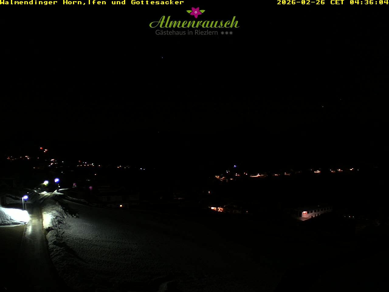 Archived webcam image showing "Almenrausch" Guesthouse Riezlern on 26 Feb 2026 at 00:56 23:00
