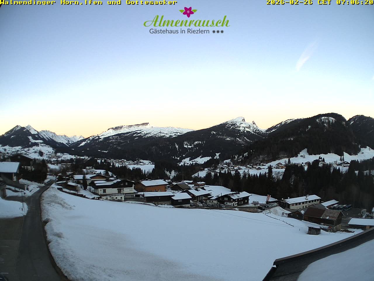 Archived webcam image showing "Almenrausch" Guesthouse Riezlern on 26 Feb 2026 at 07:56 06:00