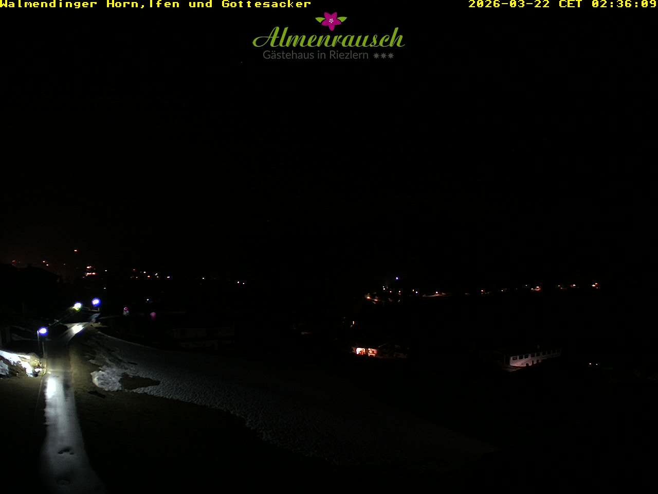 Archived webcam image showing "Almenrausch" Guesthouse Riezlern on 22 Mar 2026 at 02:19 01:00