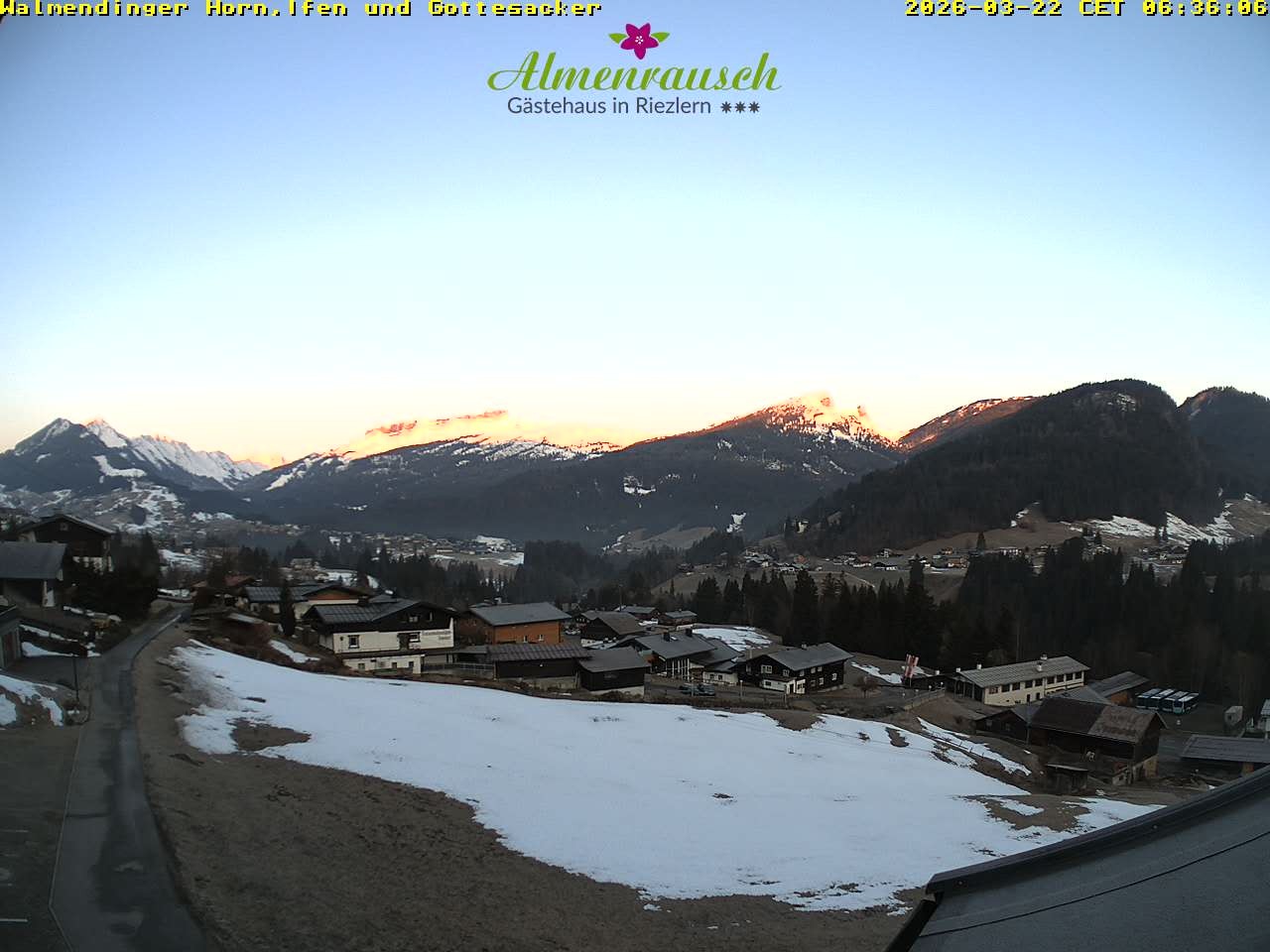 Archived webcam image showing "Almenrausch" Guesthouse Riezlern on 22 Mar 2026 at 06:19 05:00