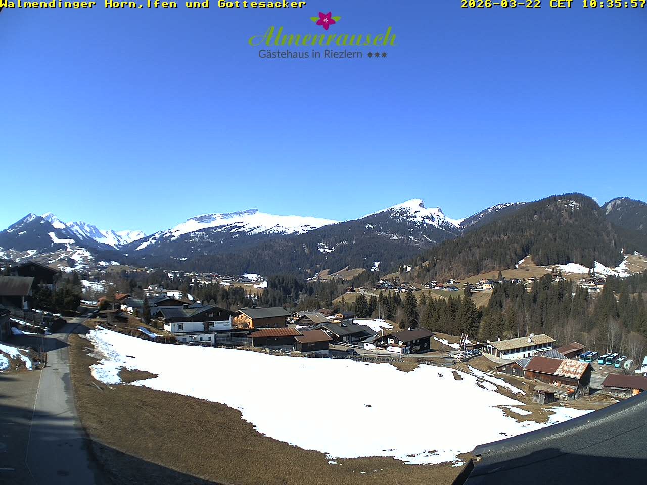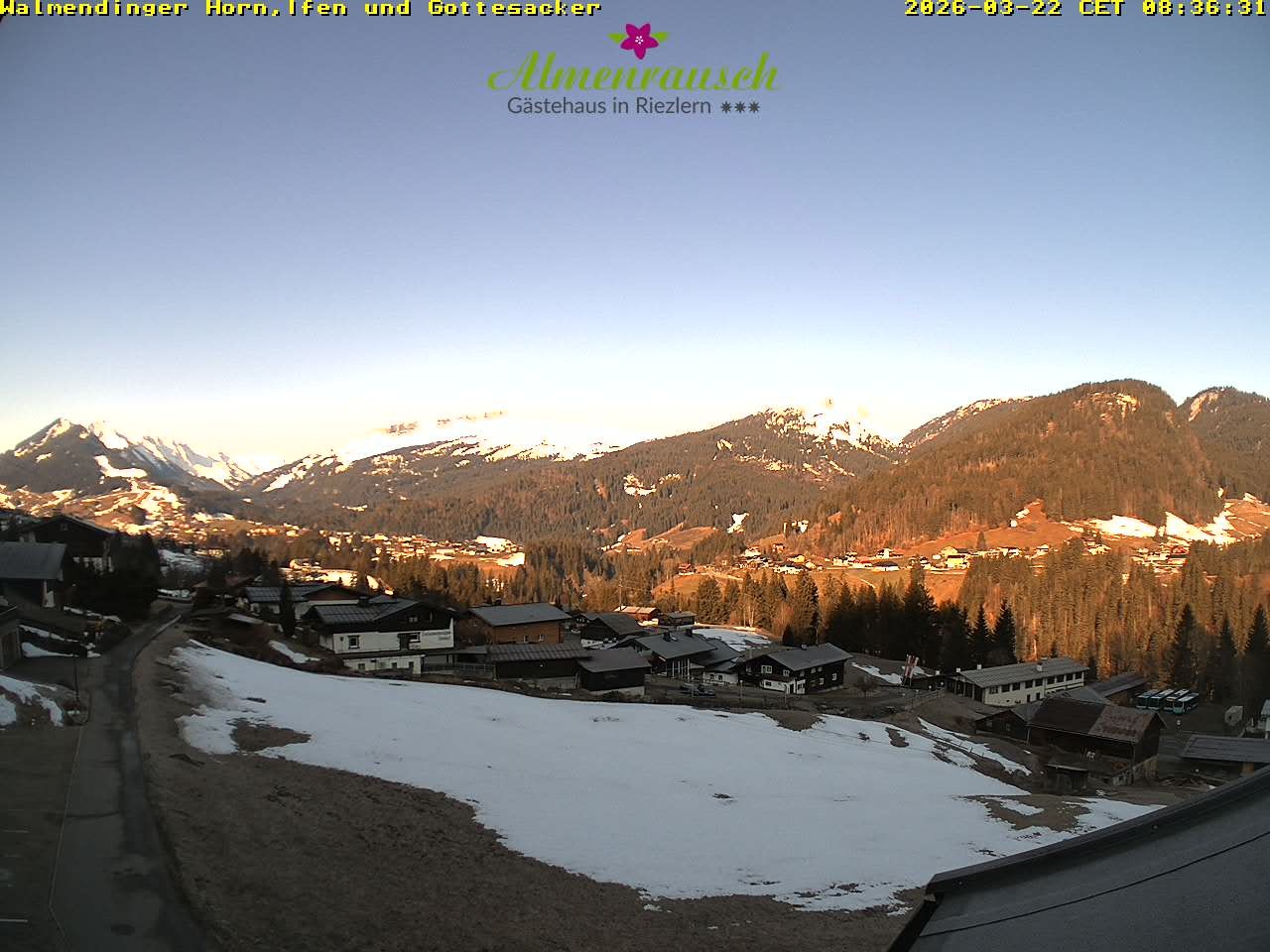 Archived webcam image showing "Almenrausch" Guesthouse Riezlern on 22 Mar 2026 at 08:19 07:00