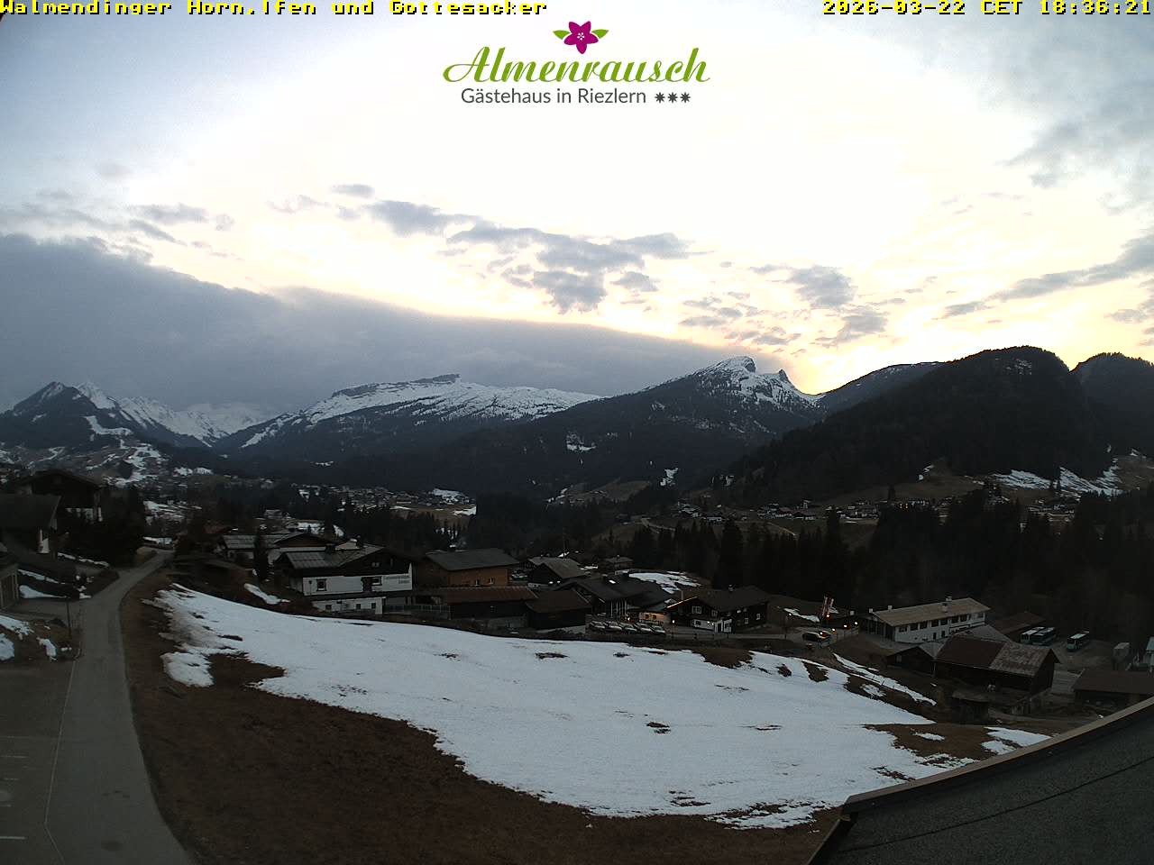 Archived webcam image showing "Almenrausch" Guesthouse Riezlern on 22 Mar 2026 at 18:19 17:00