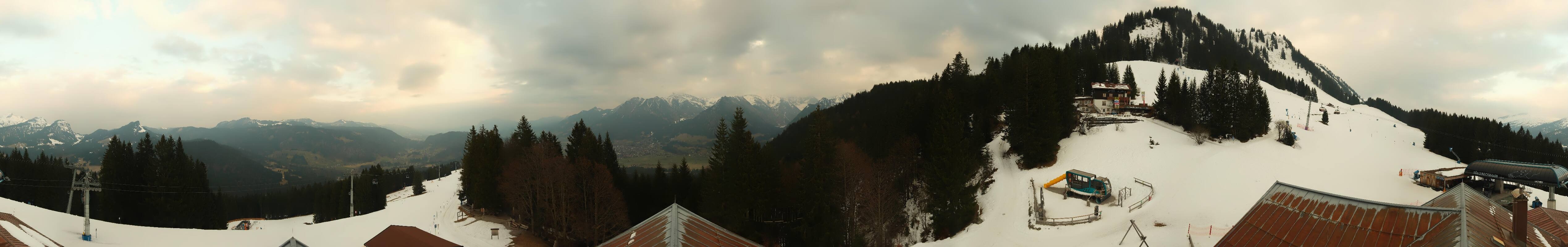 Panoramic view from the top station of Söllereck gondola lift towards Oberstdorf.
