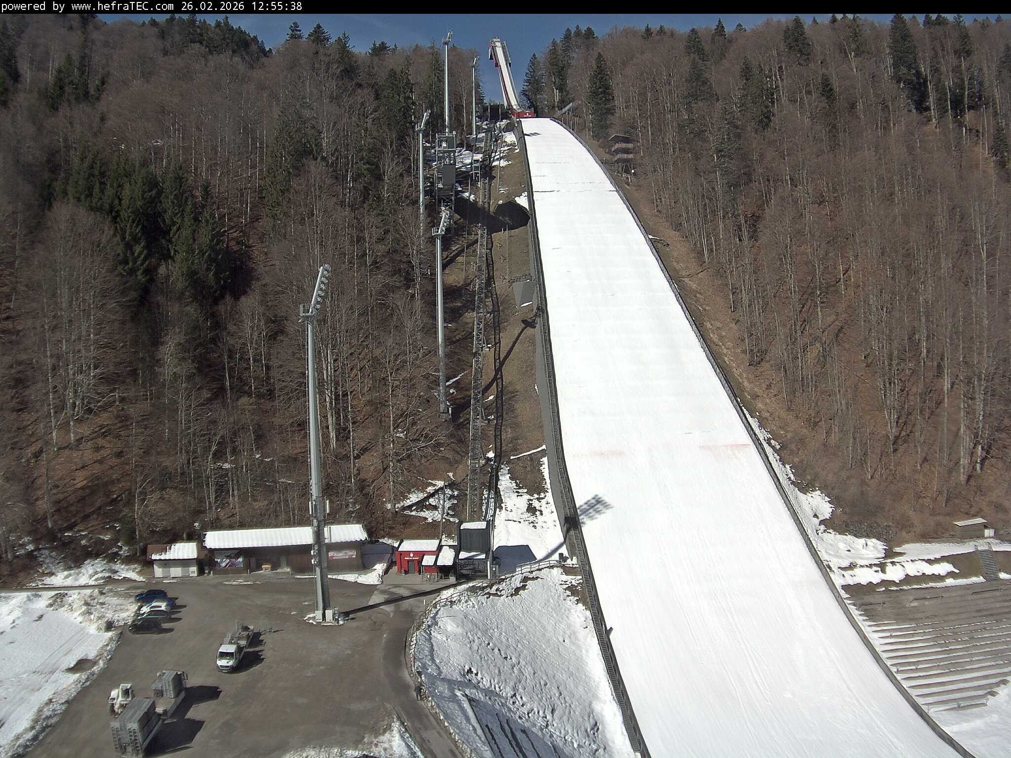 Archived webcam image showing Heini-Klopfer Ski-jumping hill on 26 Feb 2026 at 12:56 11:00