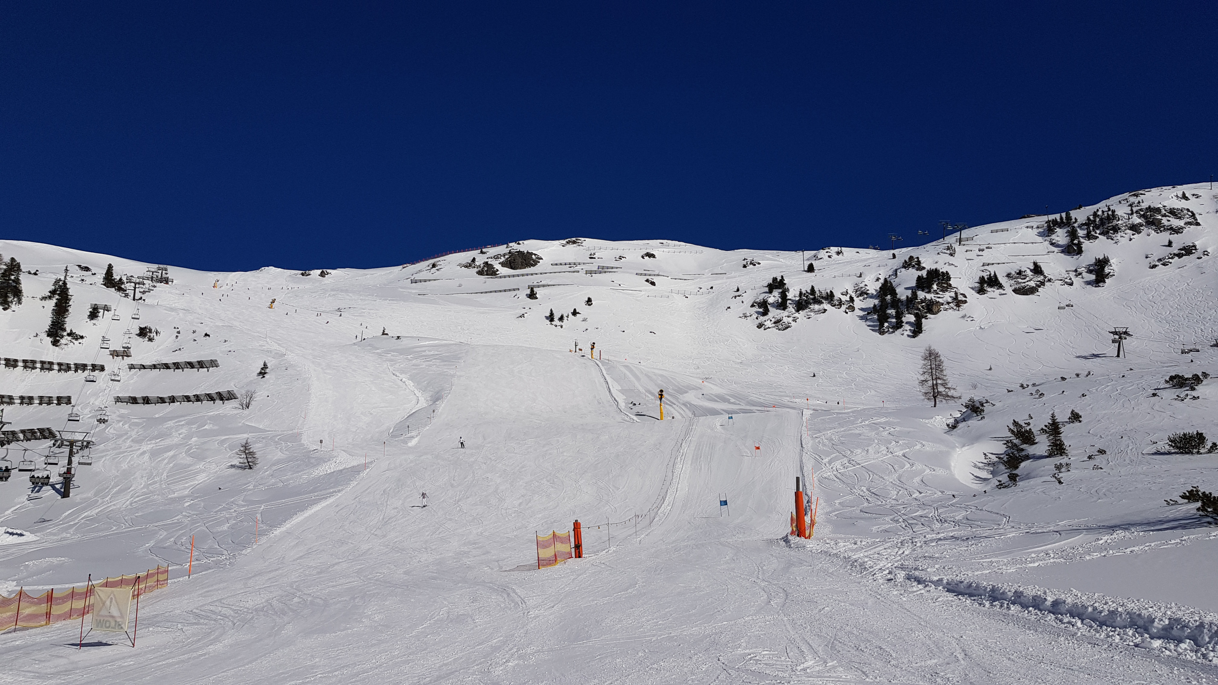 95% of the about 100 kilometers of skiable terrain are marked red and blue, while the remaining 5% are marked black. These slopes are perfect for advanced skiers. However, you should bring some experience, seeing as the larger part of the red marked slopes is rather challenging. Slopes definitely worth your time would be the descend from the top station Zehnerkar or the piste starting out at the Seekareck. Real professionals should try the black marked slope alongside the Schaidbergbahn. Legendary is the slope Gamsleiten 2, which should only be considered by true expert skiers. To find out just how fast your personal best is, Obertauern has a public racing track as well as some speed measurement tracks. An absolute highlight for skiers and snowboarders in Obertauern is the so-called Tauernrunde. You can ski the circuit in both directions and it leads you through the entire resort without the need to take a lift or a slope twice!