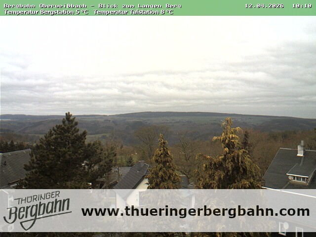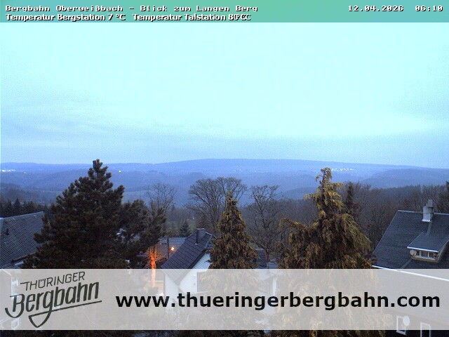 View from city Oberweißbach in Thuringian Forest towards region Langer Berg.