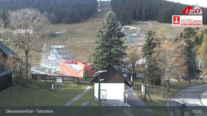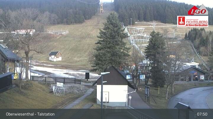 This webcam is located at the base station at the ski resort of Oberwiesenthal. It looks upon the lower part of Fichtelberg mountain.