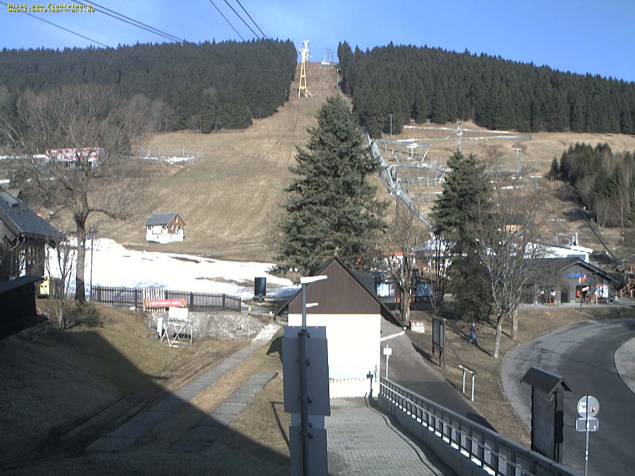 Outlook at the valley station of "Schwebebahn" towards Fichtelberg mountain.