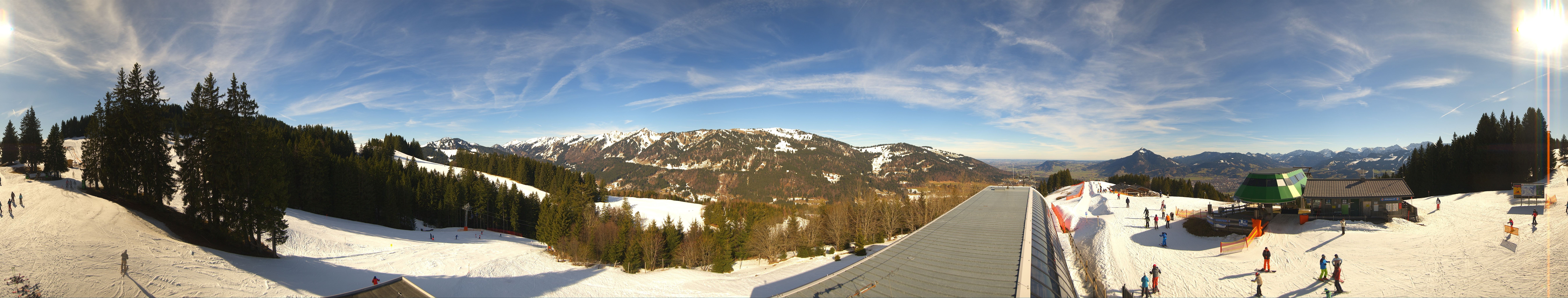Panorama view of Ofterschwang ski resort. The webcam is located at top station gondola Ossi Reichert.