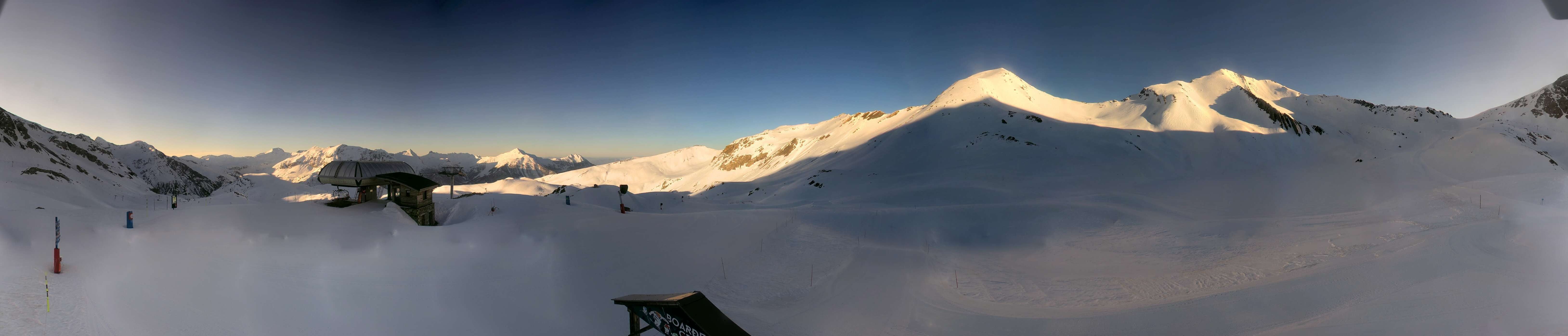 From the top station of chairlift Les Estaris at 2.600 meter, this webcam provides a good view towards the surrounding mountains.