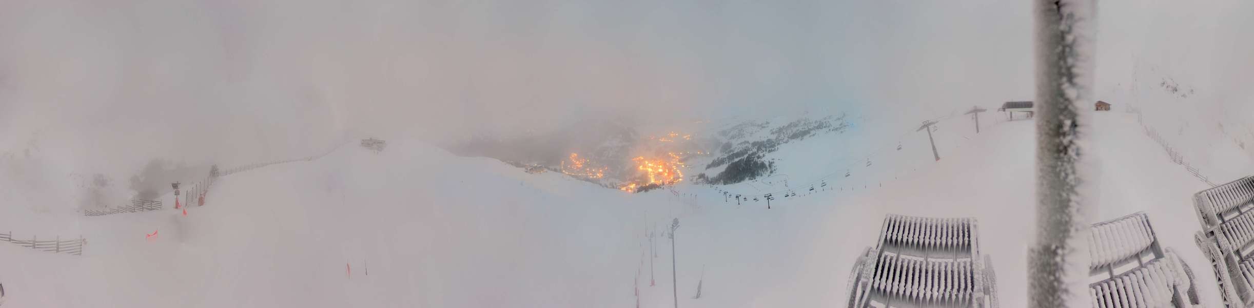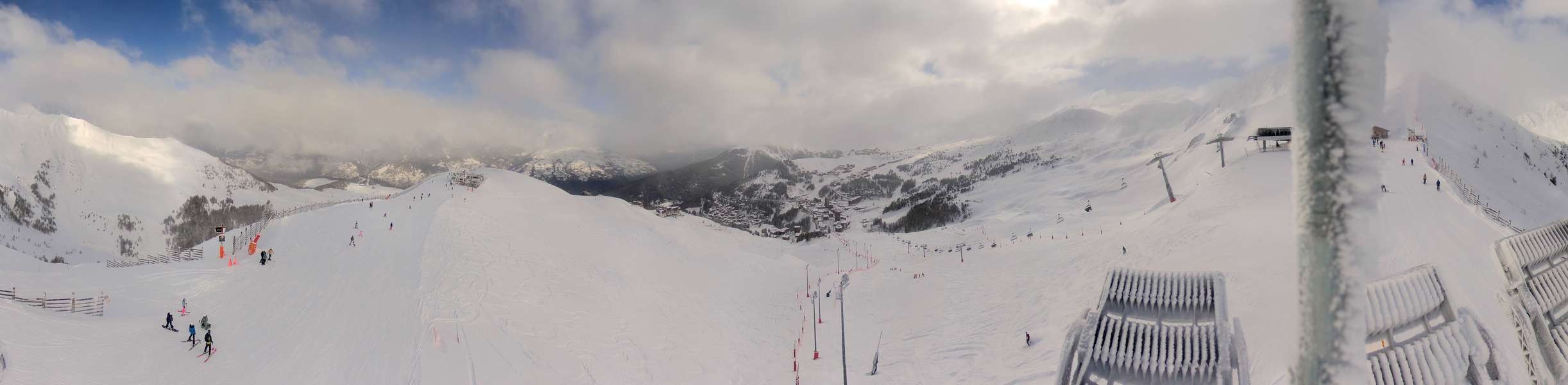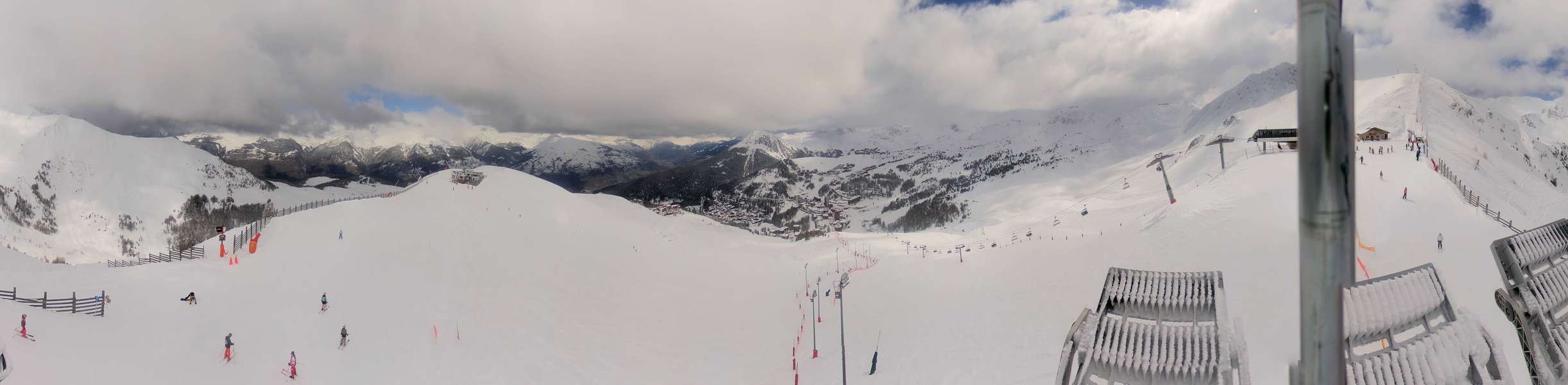 Webcam shows top station of Bécoin at French Ski Resort La Plagne.