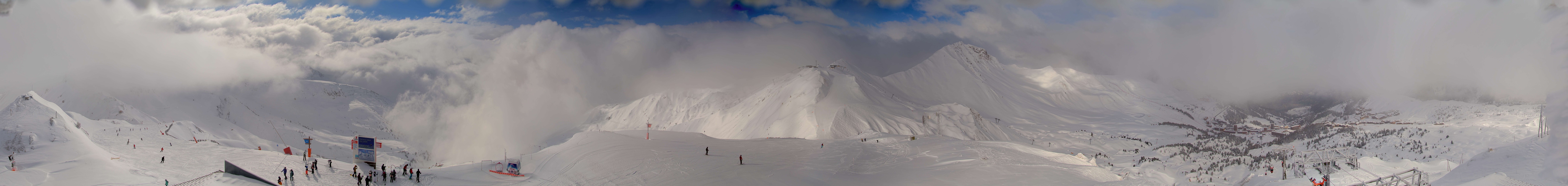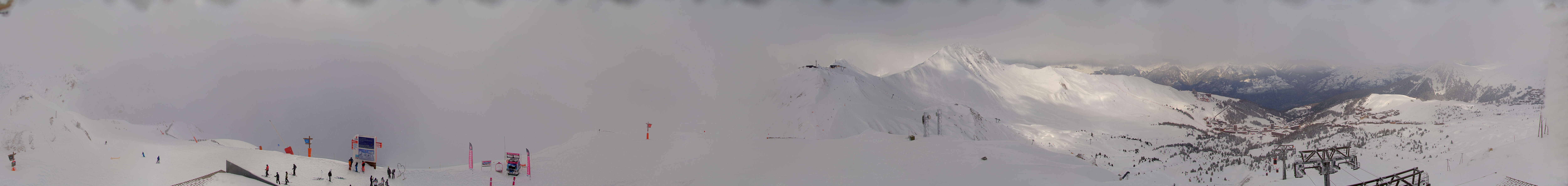 Webcam faces the peak of La Grande Rochette, which is 2508m high and located within the ski resort la Plagne.