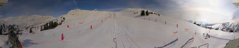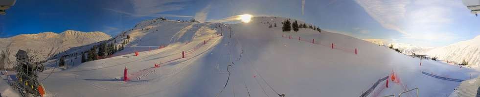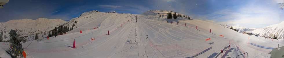 View from the mountain Restaurant La Rossa at Ski Resort La Plagne in France.
