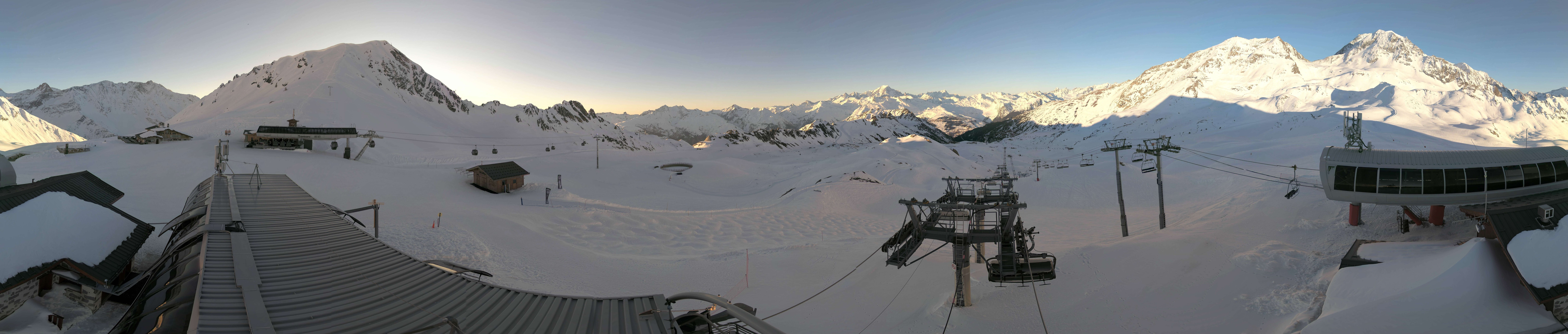 The webcam is situated at the top station of chairlift Arcabulle at 2.600 meter in french ski resort Les Arcs.