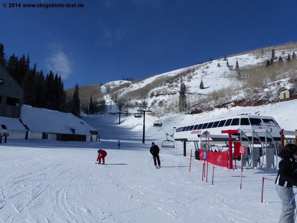 Park City is divided into 7 subareas. We recommend beginners to predominantly stay in the subarea that also forms the entrance to the resort. The green “Drift” and the blue “Payday” trails are little demanding and the green “Homerun” will take even total novices safely back into the valley. The two lifts “First Time Lift” and “Three Kings Lift” in the “Ski Team” subarea were dedicated to novice skiers and boarders. In order to master the many intermediate (blue) carving runs in the “King Kong”, basic skiing skills and some courage are required. The descents in the remoter areas of the ski resort are not recommendable for beginners as they are simply too demanding