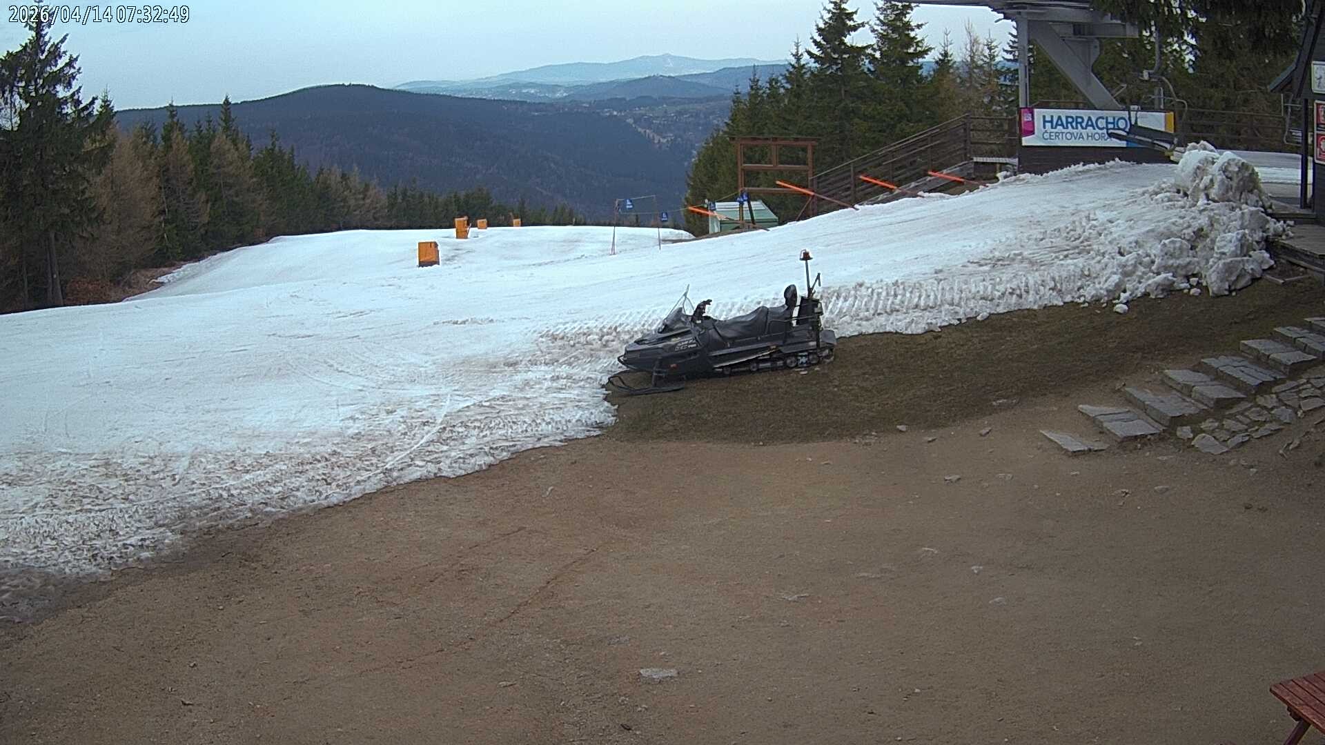 Webcam shows live pictures from the top of the Teufelsberg at czech ski resort Harrachov.