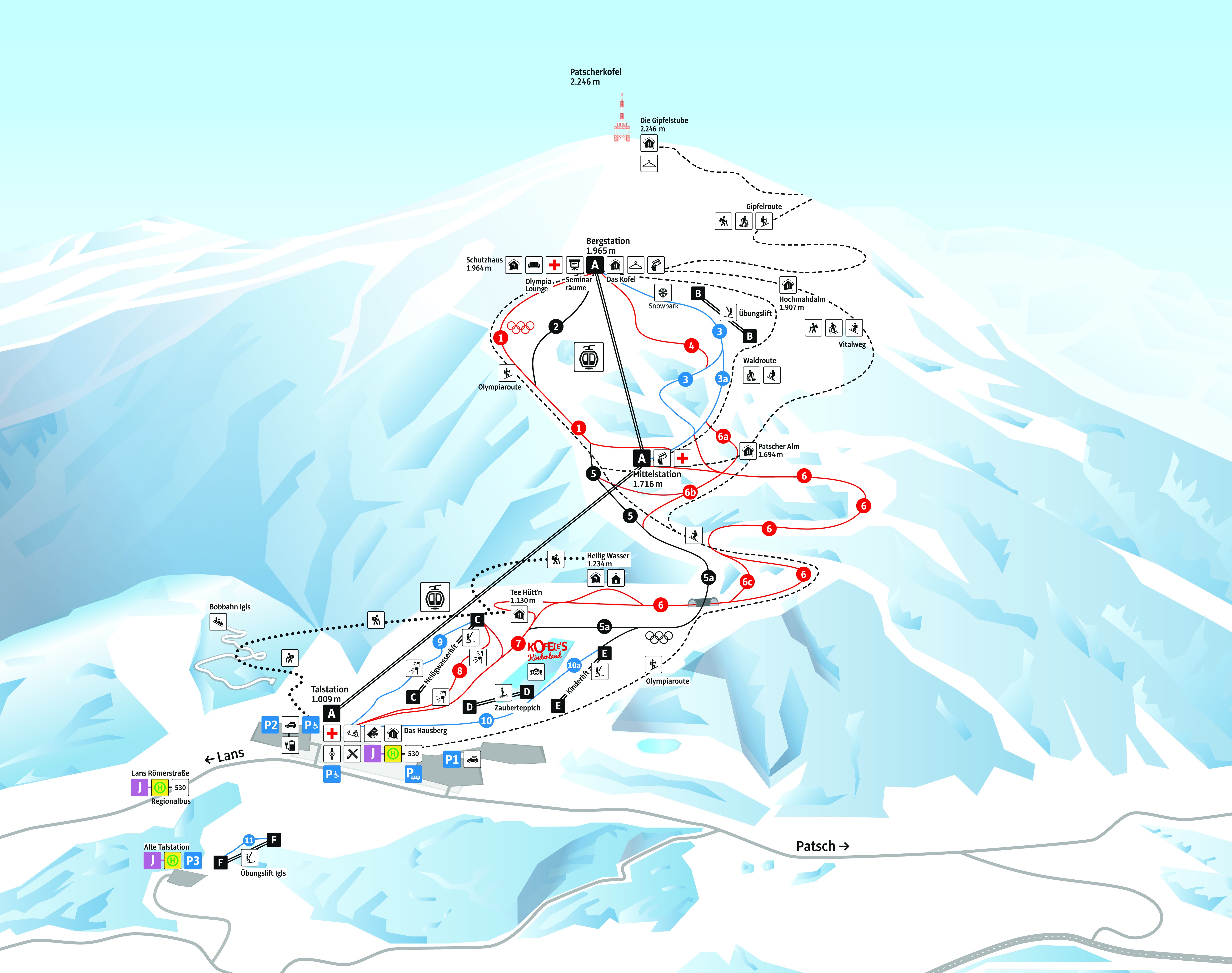 Ski Resort Patscherkofel Innsbruck and its holiday villages: Position on map