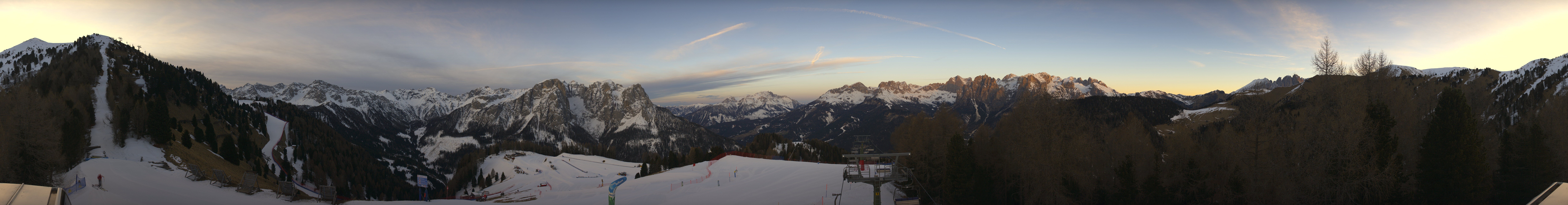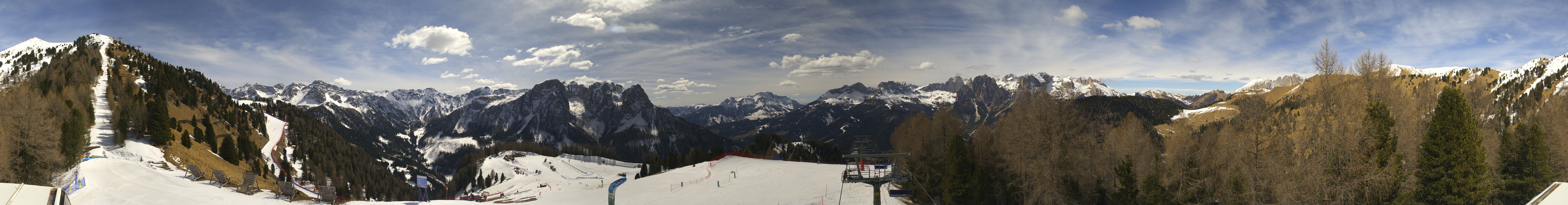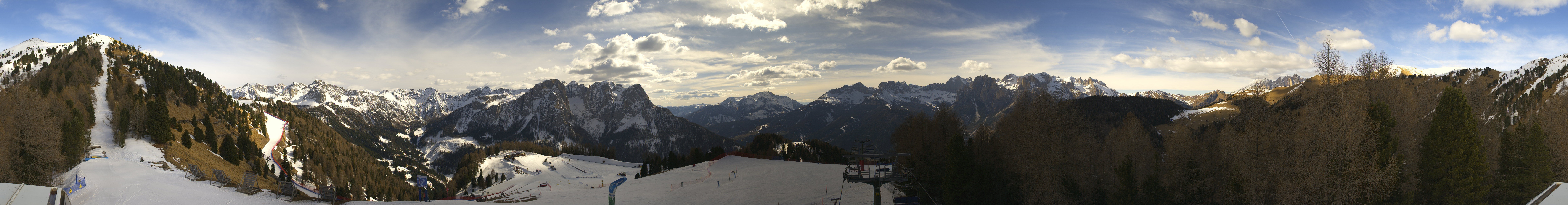 This webcam gives you a stunning Panoramic view of the Dolomites surrounding the ski resort Pozza di Fassa. You can see the Buffaure ski lift going into the Fassa Valley.