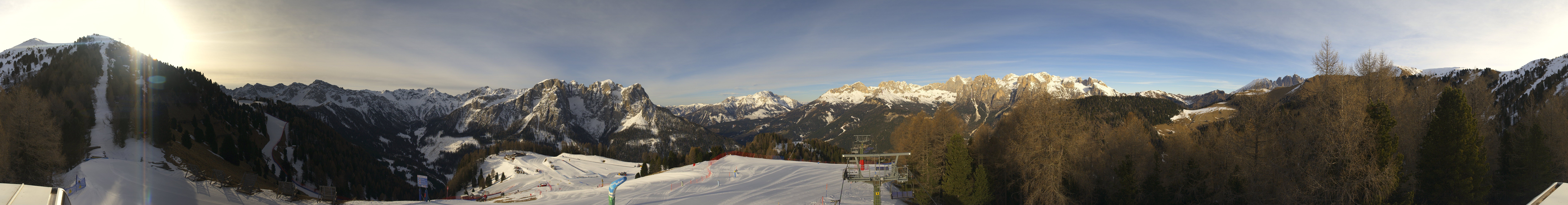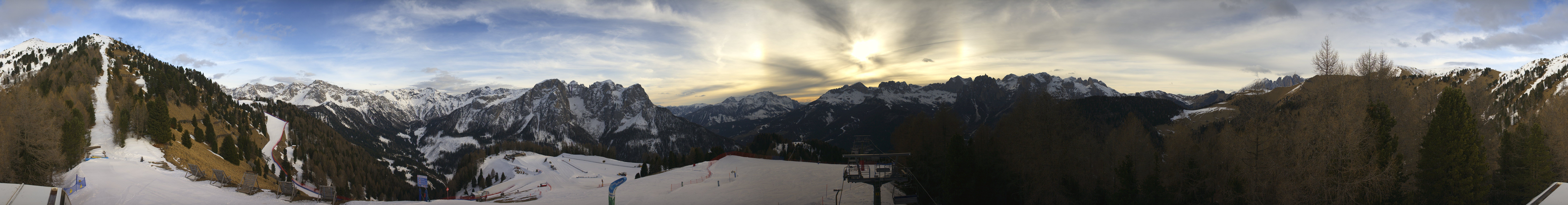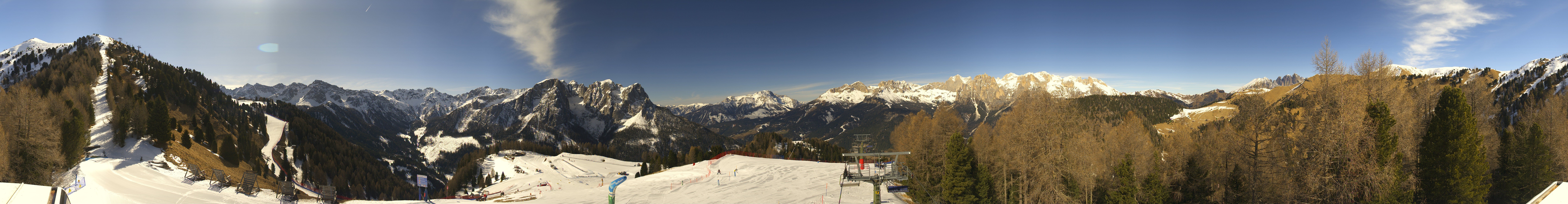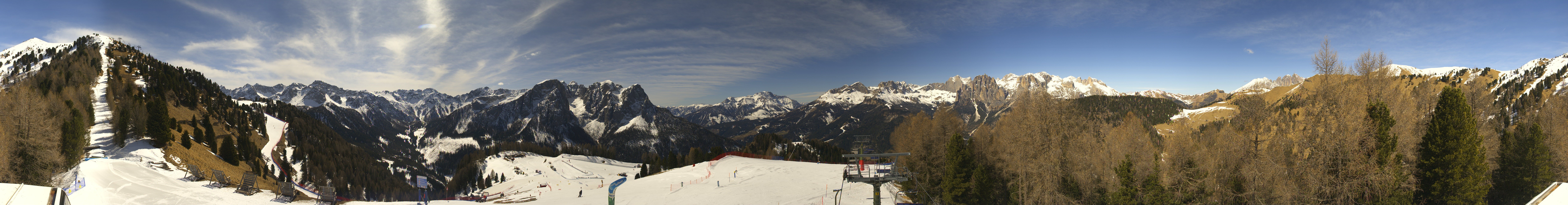 This webcam gives you a stunning Panoramic view of the Dolomites surrounding the ski resort Pozza di Fassa. You can see the Buffaure ski lift going into the Fassa Valley.