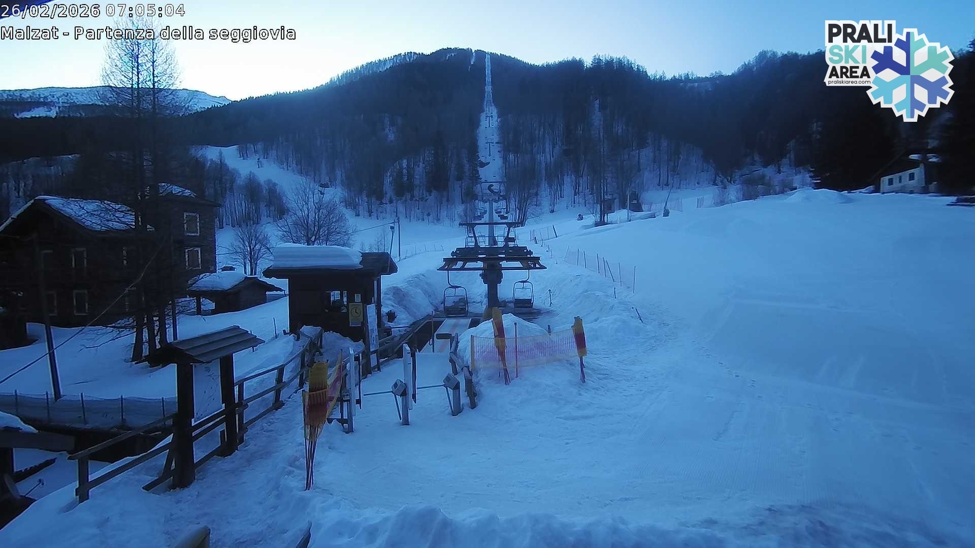 Archived webcam image showing Malzat Chair Lift - Prali Ski Resort on 26 Feb 2026 at 06:53 05:00