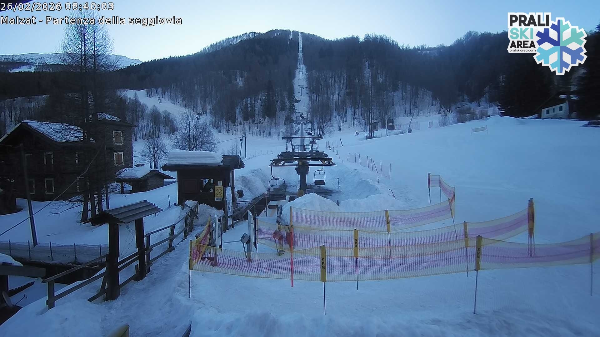 Archived webcam image showing Malzat Chair Lift - Prali Ski Resort on 26 Feb 2026 at 08:53 07:00