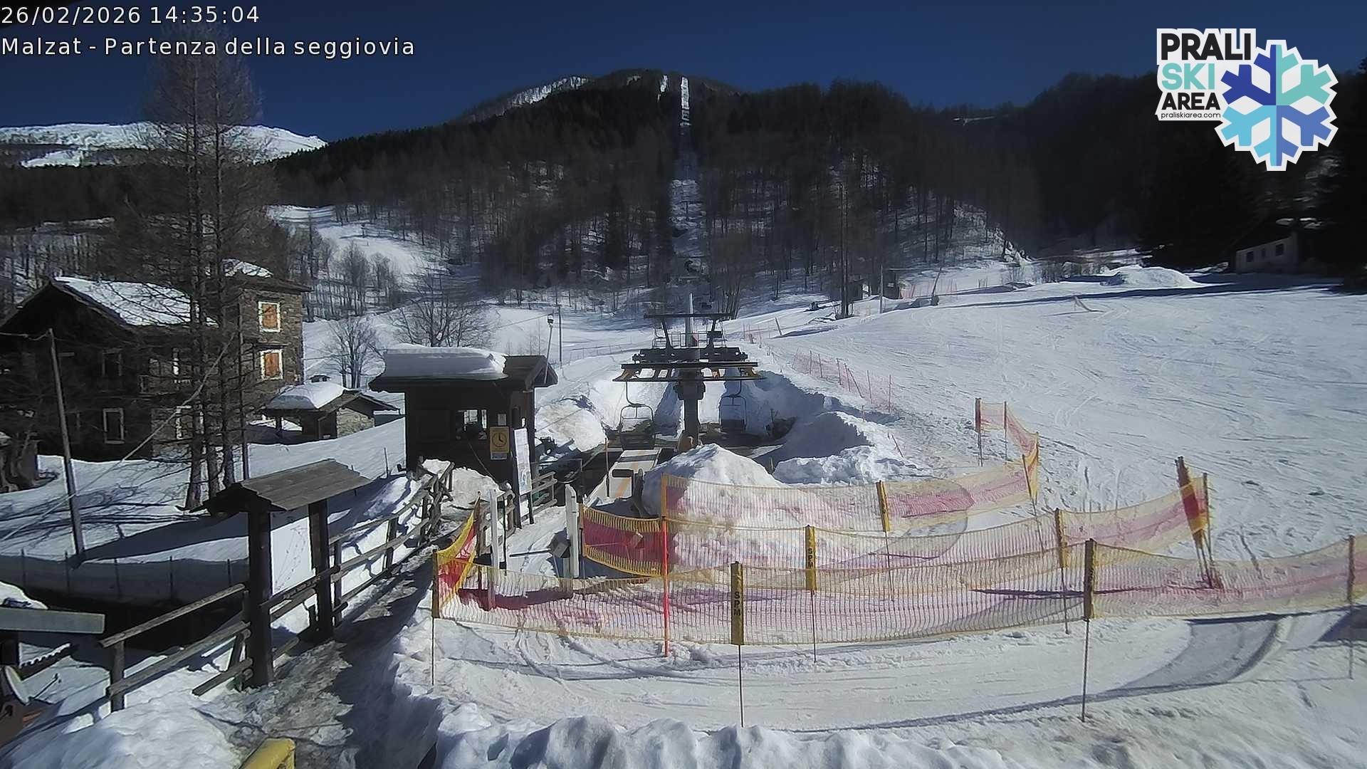 Archived webcam image showing Malzat Chair Lift - Prali Ski Resort on 26 Feb 2026 at 14:53 13:00