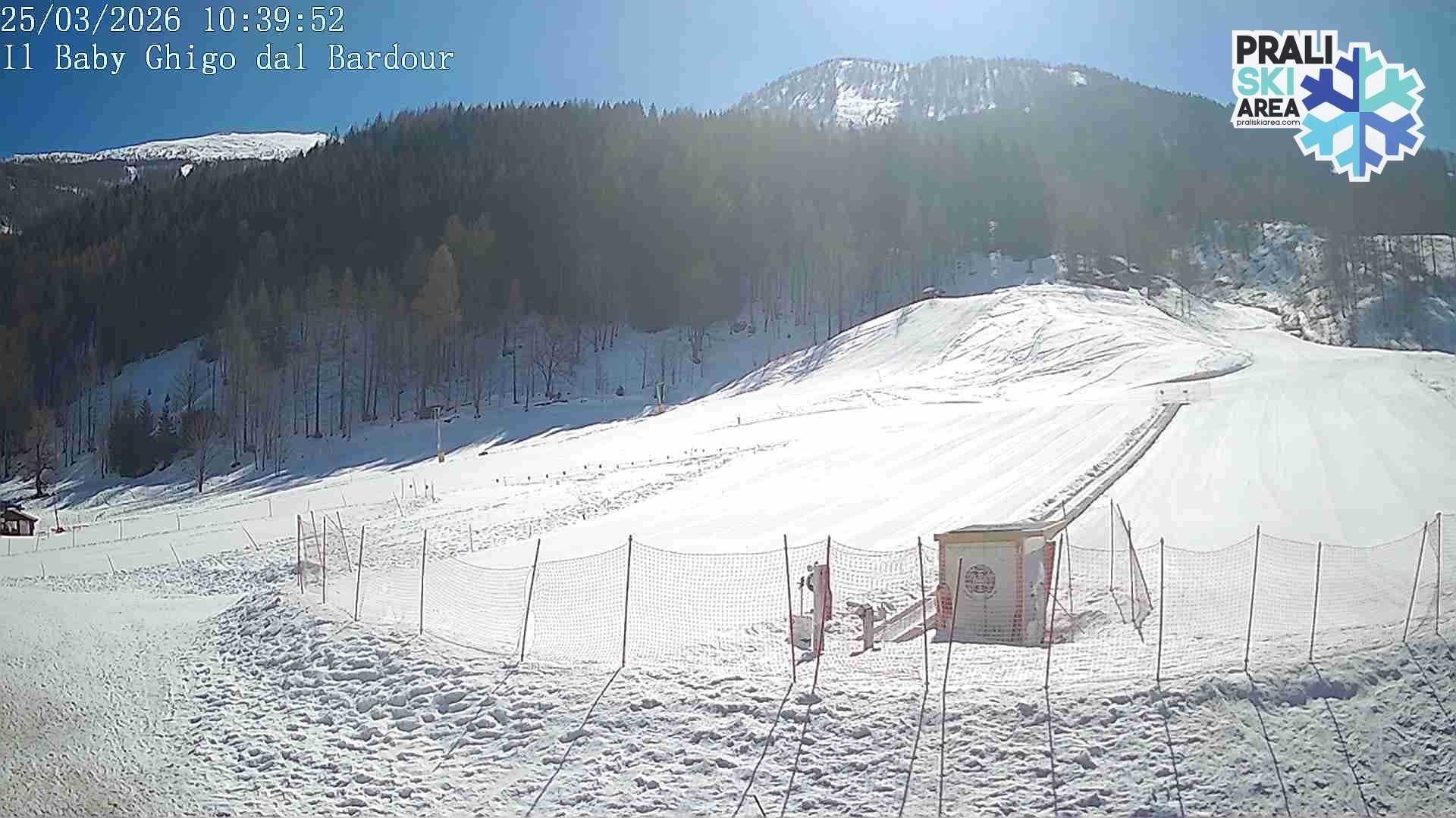 Archived webcam image showing Prali Ski Resort - Baby Ghigo Slope on 25 Mar 2026 at 10:51 09:00