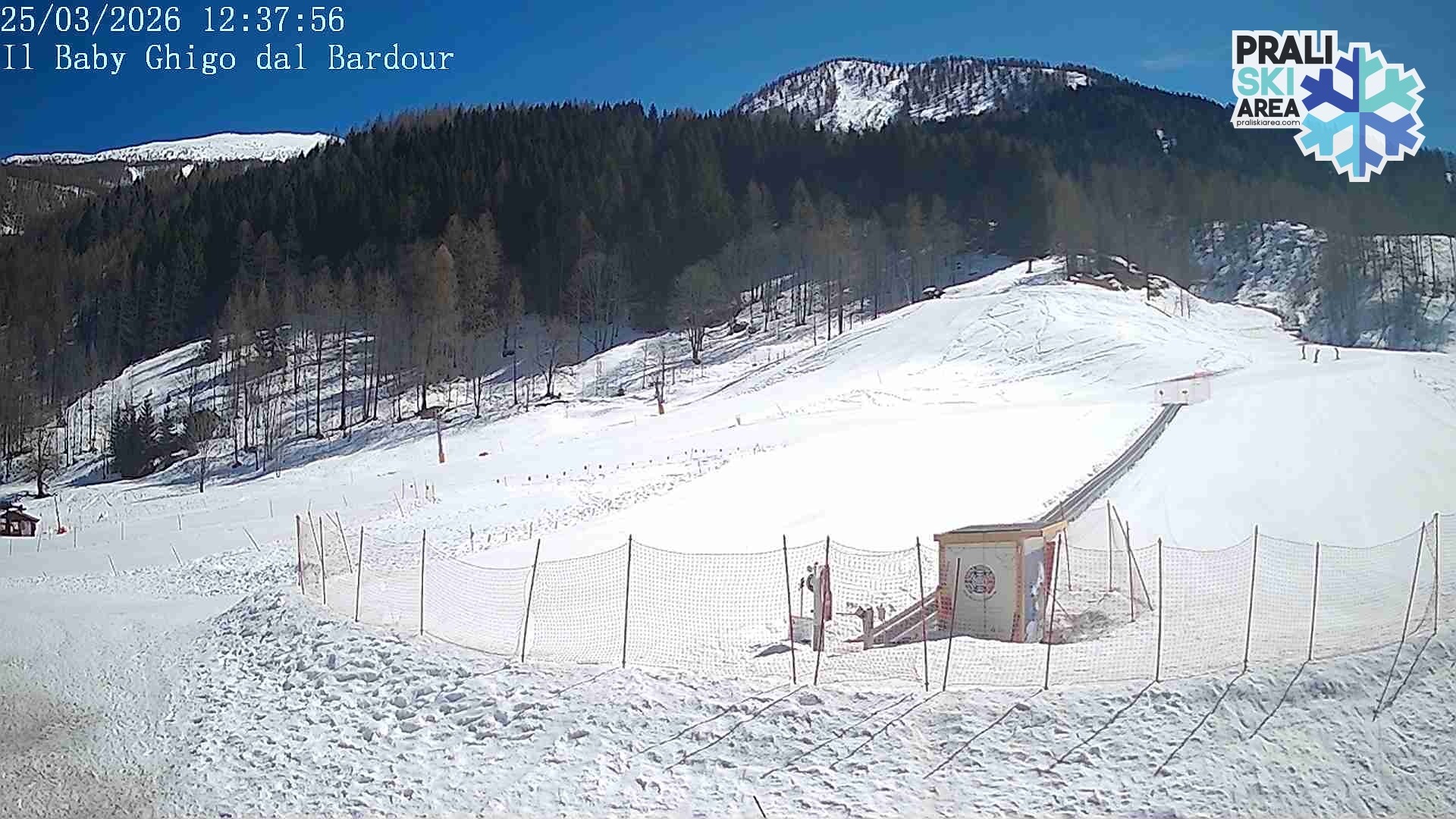 Archived webcam image showing Prali Ski Resort - Baby Ghigo Slope on 25 Mar 2026 at 12:51 11:00