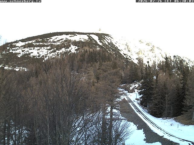 Archived webcam image showing Puchberg am Schneeberg Baumgartner Station on 26 Feb 2026 at 06:32 05:00