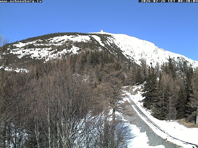 Archived webcam image showing Puchberg am Schneeberg Baumgartner Station on 26 Feb 2026 at 08:32 07:00