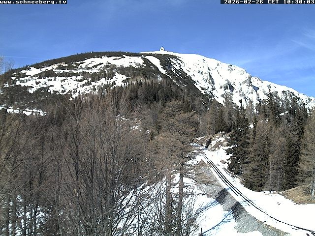 Archived webcam image showing Puchberg am Schneeberg Baumgartner Station on 26 Feb 2026 at 10:32 09:00