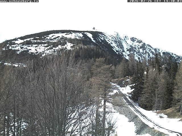 Archived webcam image showing Puchberg am Schneeberg Baumgartner Station on 26 Feb 2026 at 14:32 13:00