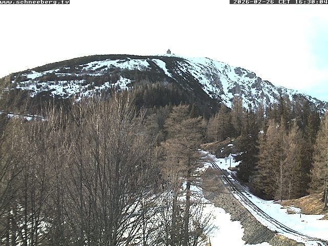 Archived webcam image showing Puchberg am Schneeberg Baumgartner Station on 26 Feb 2026 at 16:32 15:00