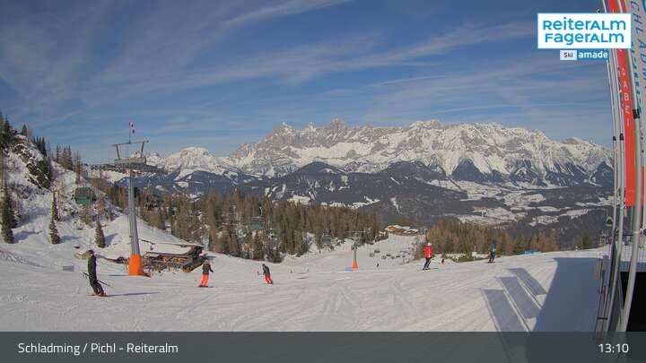 Archived webcam image showing Reiteralm - Preunegg Jet top station on 26 Feb 2026 at 13:56 12:00