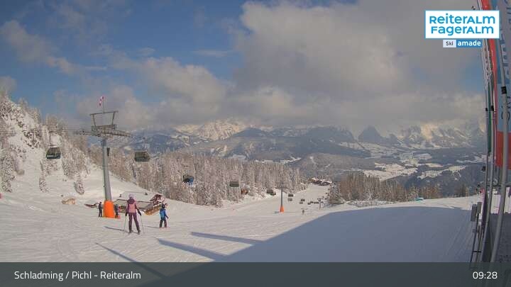Archived webcam image showing Reiteralm - Preunegg Jet top station on 28 Mar 2026 at 09:44 Latest