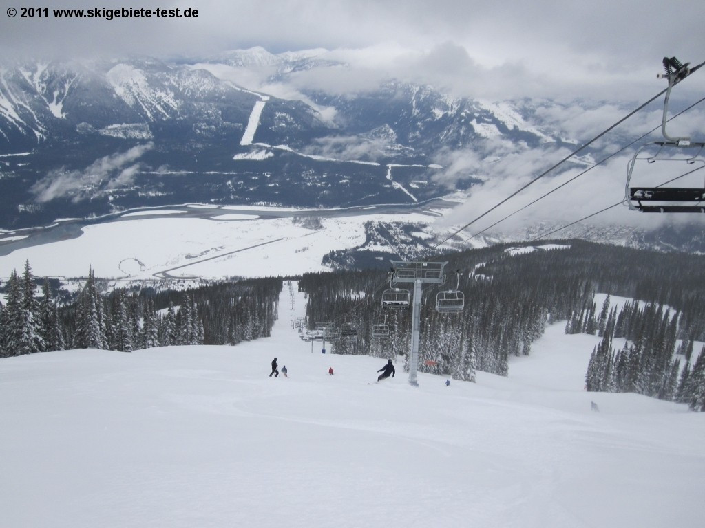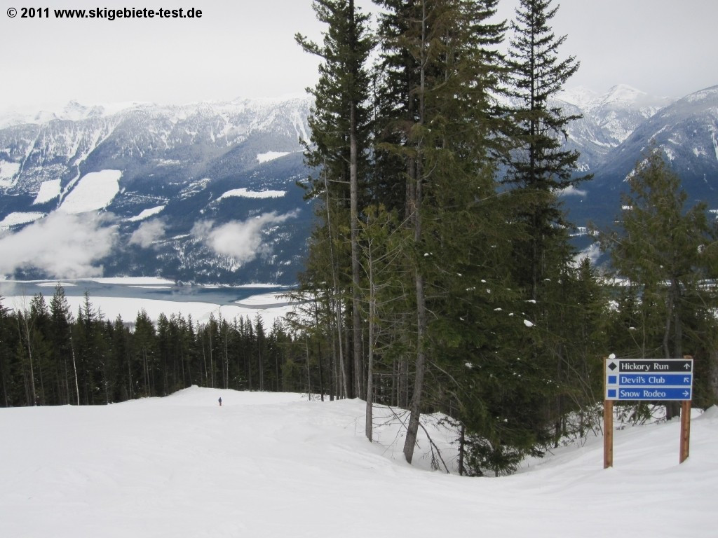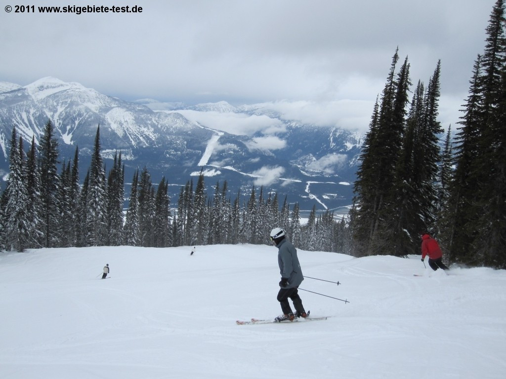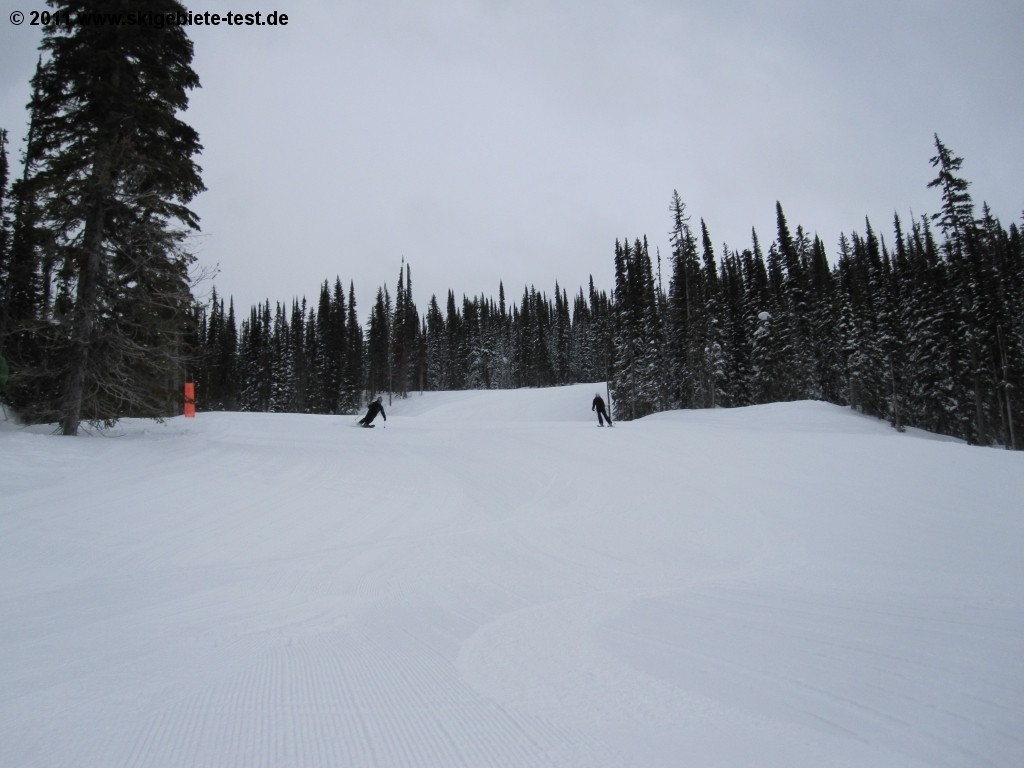 Revelstoke is known to many active winter athletes as an “expert” ski resort. But even leisure skiers will find here quite a few intermediate trails (“blue” trails in Canada), particularly in the area from the upper and mid-way terminals of the Revelation gondola, where the varied terrain will definitely keep them entertained. A total of seven intermediate trails run down to the gondola’s mid-way terminal. From there you can choose between a total of six different blue trails to take back down to the base. If you’d like to change it up a bit and take on some steeper slopes, you’ll find more than enough opportunities to put your abilities to the test on the black and blue trails surrounding the chairlift “The Stoke.” More strapping skiers can ski “The Stoke” from its upper terminal the entire 1713 elevational meters of difference all the way down to the base without leaving the more challenging slopes. For a little more variety, we recommend the North Bowl Area, which you can get to by taking the “Riper Connector” trail. Once you get there, you’ll find three very nice intermediate trails (“The Chopper,” “Denver Dollars” and “Burn Down”) around the chairlift The Ripper. If that’s still not enough, in the same area you’ll also be able to do some nice glade runs on the side.