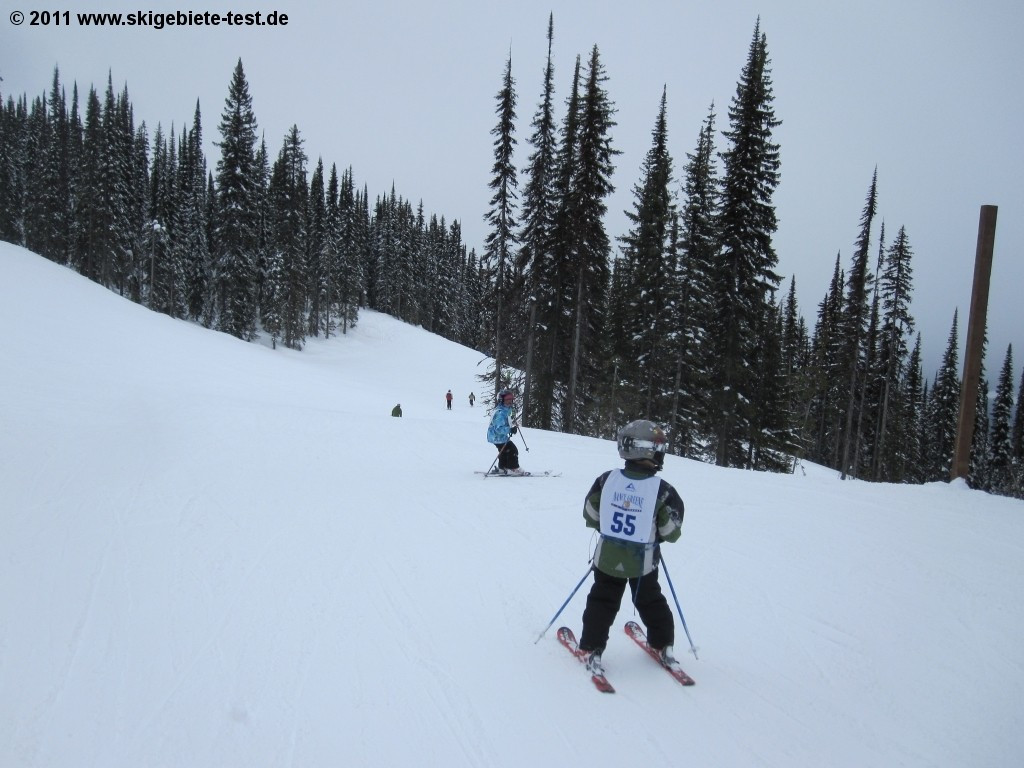 As we mentioned in the Beginner category, Revelstoke is not necessarily the best option for every beginner. But families with children stepping onto the snow for the first time in skis will find a magic carpet and a bunny slope (“Little Bit”) at the Mid-Mountain Lodge. Once your kids are ready for a slightly bigger challenge, however, it’s difficult to find suitable trails. A large part of the only green (easy) trails, “The Last Spike” and “Sunshine,” is cat tracks, which isn’t great for beginners. Unfortunately, there is also no kids’ park for the little ones to practice in. If your kids already have a bit of experience on skis, Revelstoke can be the ideal playground for them. If you enjoy spending your time on groomed trails, we recommend giving “The Chopper” and “Burn Down” off the Ripper chairlift, as well as “Critical Path” and “The Last Spike” off of the Stoke chair. And if you’re looking to get some experience in glade skiing, head over to the intermediate “Aspen Glades” (between “Cannonball” and “Snow Rodeo”) or “Stop at the Road Glades” (to the right of the trail “Burn Down” on the trail map). For athletically-gifted parents with kids who are either experienced skiers or spending their time taking lessons from an instructor, Revelstoke is a dream come true. With an average of 12-18 meters of snowfall every year, conditions on the ungroomed slopes are usually perfect. We especially enjoyed “Jalapeno,” off to the right of the Stoke chairlift, as well as “Greely Bowl” and “Gracias Ridge” in the “North Bowl Area.” For a between-tree challenge, try the “Beauty Glades off the Ripper chairlift as well as the “Conifers of Gnarnia Glades.” In our opinion, Revelstoke has optimal conditions for athletic families. For children who are still getting used to their skis and parents with very young children, the terrain there might turn out to be a little too challenging.