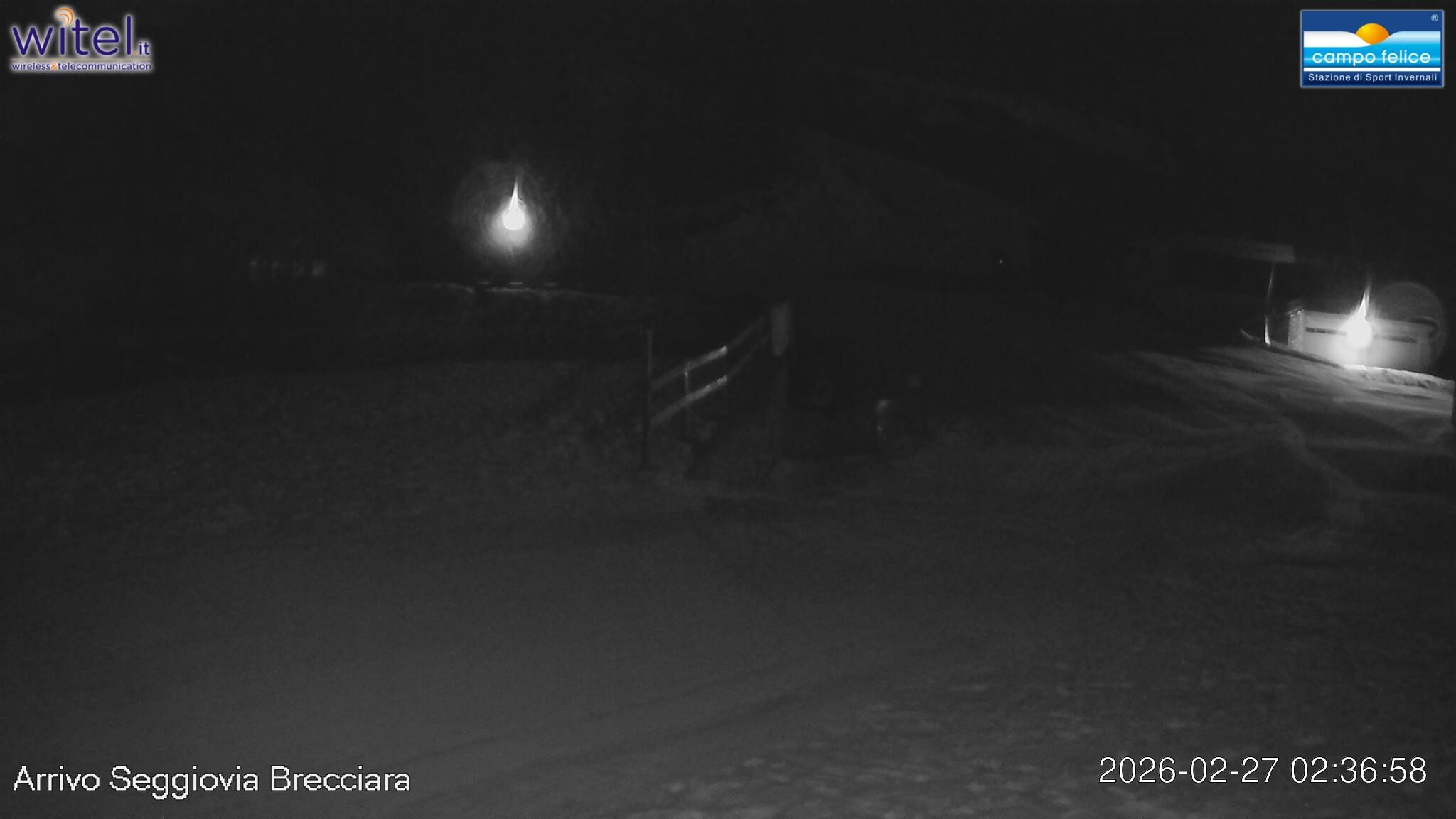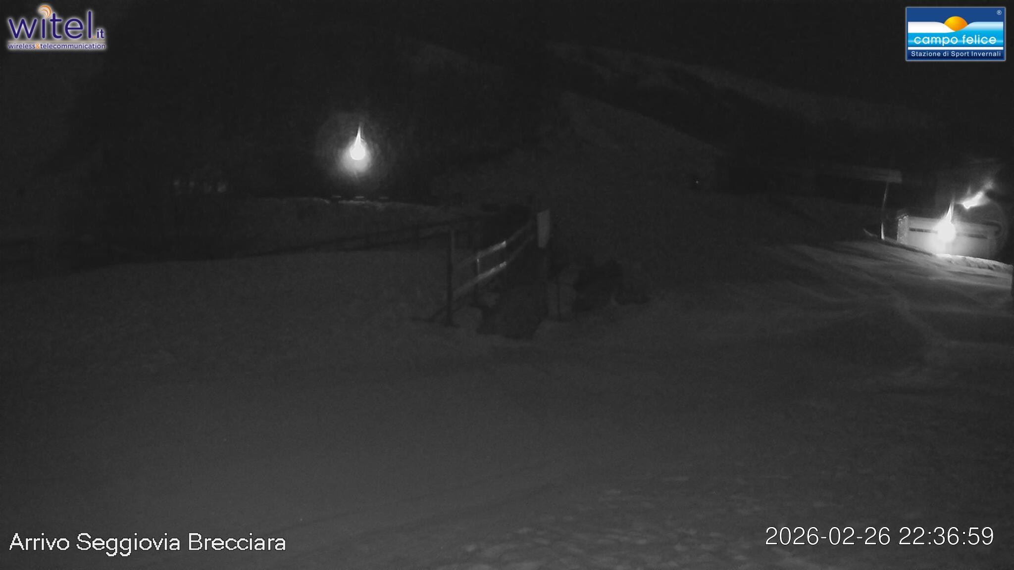 Located at the top station of Brecciara chairlift, the webcam offers the view towards the top station of chairlift Campo Felice in the Italian ski resort of the same name. The restaurant Chalet del Bosco, which is also located at the summit of the mountain Serralunga, can also be spotet. Further, the freeride piste Falco, the red-marked piste Vergine and the blue-marked piste Scorpione can be seen.
