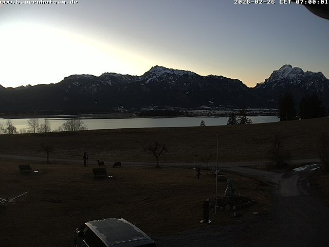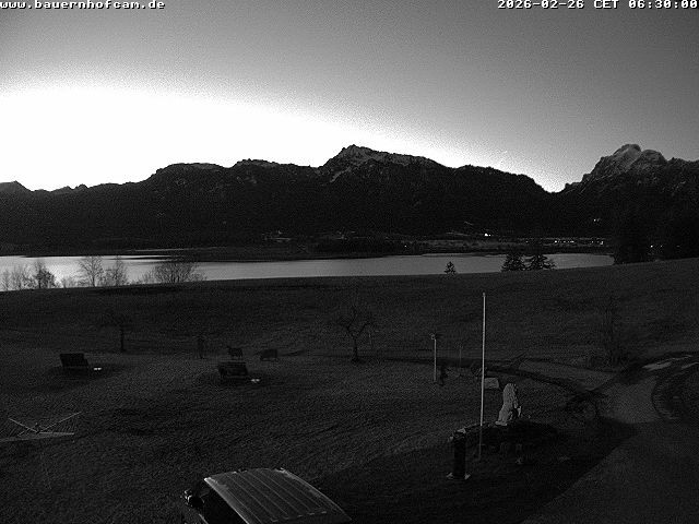 Archived webcam image showing Salenberghof, Lake Forggensee on Feb 26, 2026 at 6:47 AM 12:00 AM