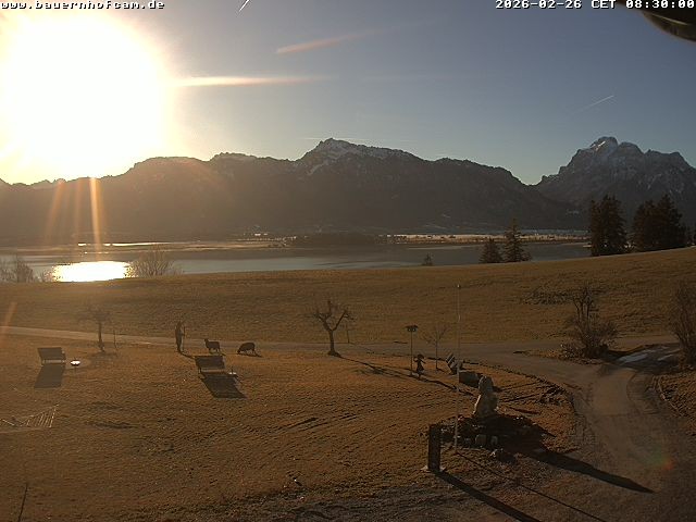 Archived webcam image showing Salenberghof, Lake Forggensee on Feb 26, 2026 at 12:47 PM 6:00 AM